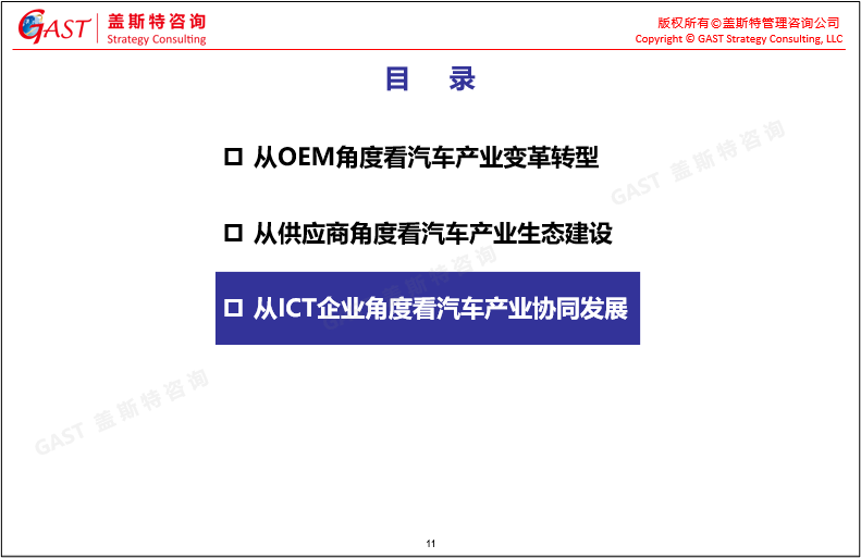 ICT行业与汽车产业实现相互赋能:ICT企业仅依靠自身很难独立抓住汽车产业变革的机会,首先需要明确自己的定位是“深度参与者”,进一步明确自身在产业变革中的发展目标,并根据企业优势能力与资源,结合汽车产业的切实需求,实现跨界融合。