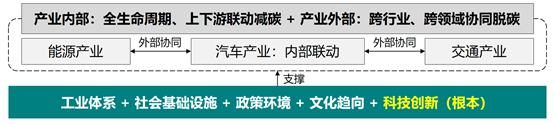 无论产业内部联动,还是产业外部协同,最终要真正实现碳中和,都有赖于整个工业体系、社会基础设施、政策环境、文化趋向以及科技创新的共同支撑。
