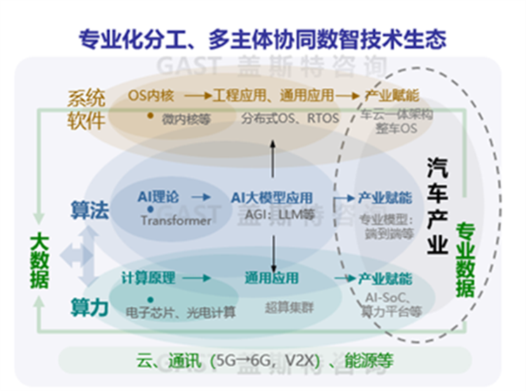 盖斯特研究团队认为,数智汽车持续进化依靠的是新技术能力的不断赋能、背后研发范式的转变以及多主体生态资源的充分协作,因此生态化发展是必由之路。