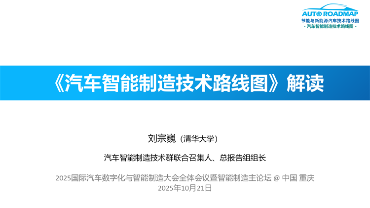 本篇为《汽车智能制造技术路线图》的总体解读。文章核心内容源自智能制造技术群联合召集人、总报告组组长、清华大学(车辆学院)汽车产业与技术战略研究院院长助理刘宗巍博士代表智能制造技术群全体专家在“2025国际汽车数字化与智能制造大会(ADIM2025)”上围绕路线图所作的主旨报告。