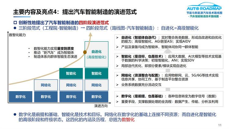 4.提出了汽车智能制造的四阶段演进范式:即数字化→网络化→智能化→自进化