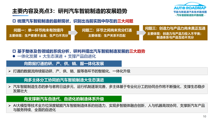 3.梳理汽车了智能制造的最新现状,识别出当前实践中存在的三大问题并对应提出三大趋势