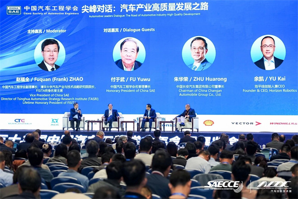 10月22日下午,在第三十二届中国汽车工程学会年会暨展览会(SAECCE 2025)开幕式暨全体大会上,FISITA终身名誉主席,清华大学车辆学院教授、汽车产业与技术战略研究院院长赵福全作为主持嘉宾,与中国汽车工程学会名誉理事长付于武、中国长安汽车集团董事长朱华荣、地平线创始人兼CEO余凯等三位嘉宾一起,围绕“汽车产业高质量发展之路”展开了一场精彩的尖峰对话,深入探讨了企业领军人作用、高质量发展本质、健康产业环境、全球化布局、产业周期规律以及产业链协同创新等重要议题。以下为本次对话实录。