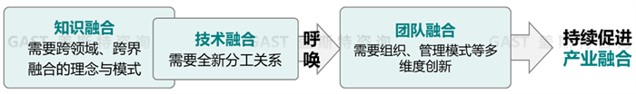 如图1所示,融合创新的内容涵盖知识、技术、团队及产业四大方面,各要素之间相互交织、紧密联系、互为支撑。多种跨界技术融合的本质在于不同知识领域的深度整合。技术融合通过不同专业领域的know-how、技能以及软硬件的相互赋能与补充,形成一个高效的整体;知识融合则强调跨学科、跨领域、跨企业的理论、信息和经验的结合,催生新的知识体系。这种融合不仅推动了技术能力的提升,还为创新提供了新的方向。