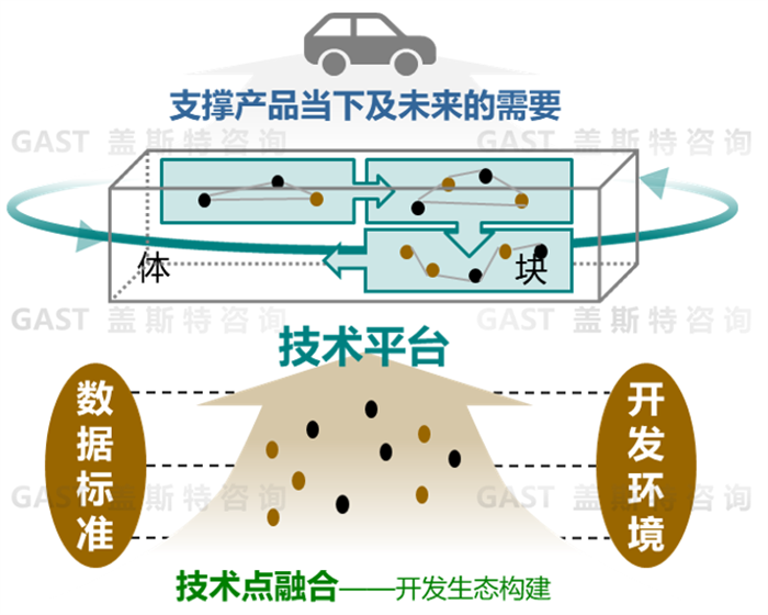 车企要清晰定义技术融合的基座,以技术平台为主,含整车架构、技术模块,背后是串联不同点的技术的逻辑、接口、框架、标准。这要求企业在技术融合过程中,不仅要关注单一技术点的创新,还要考虑技术之间的兼容性和协同性,确保技术体系的完整性和一致性。同时车企还要以技术平台需要为牵引,建立内外部生态资源整合的标准,将一切支撑平台的核心技术点及其供应商纳入生态融合范畴,确保开发环境与开发语言的统一(数据、模型、工具链等)。这有助于形成统一的技术生态,促进技术资源的有效整合和利用。