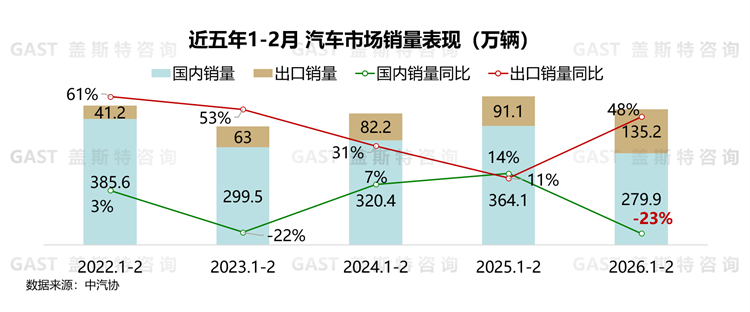 盖斯特观点:开年国内汽车市场出现预期内下滑,本质是政策调整、用户消费意愿低迷等因素叠加造成的短期市场波动。后续随着地方购车补贴与国家政策形成合力,再加上春季车展等活动带动消费需求释放、车企产能恢复与新品供给增加,市场有望逐步回暖。预计3月国内汽车销量环比将明显改善,二季度市场有望回归常态化增长。